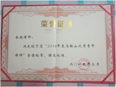 本所朱超律师获得马鞍山优秀青年律师称号